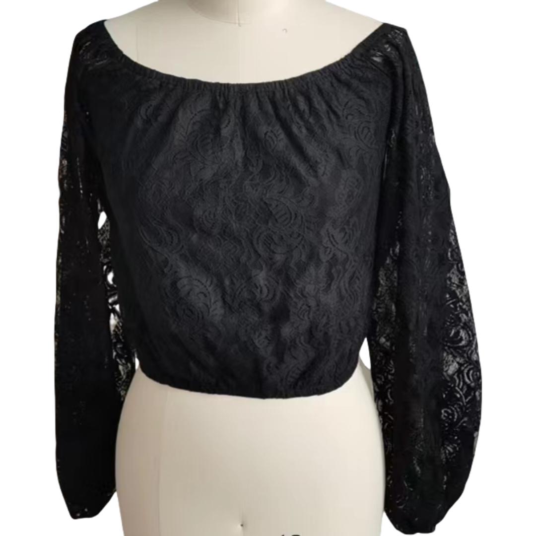 / Black Embroider Off-shouder Blouse
